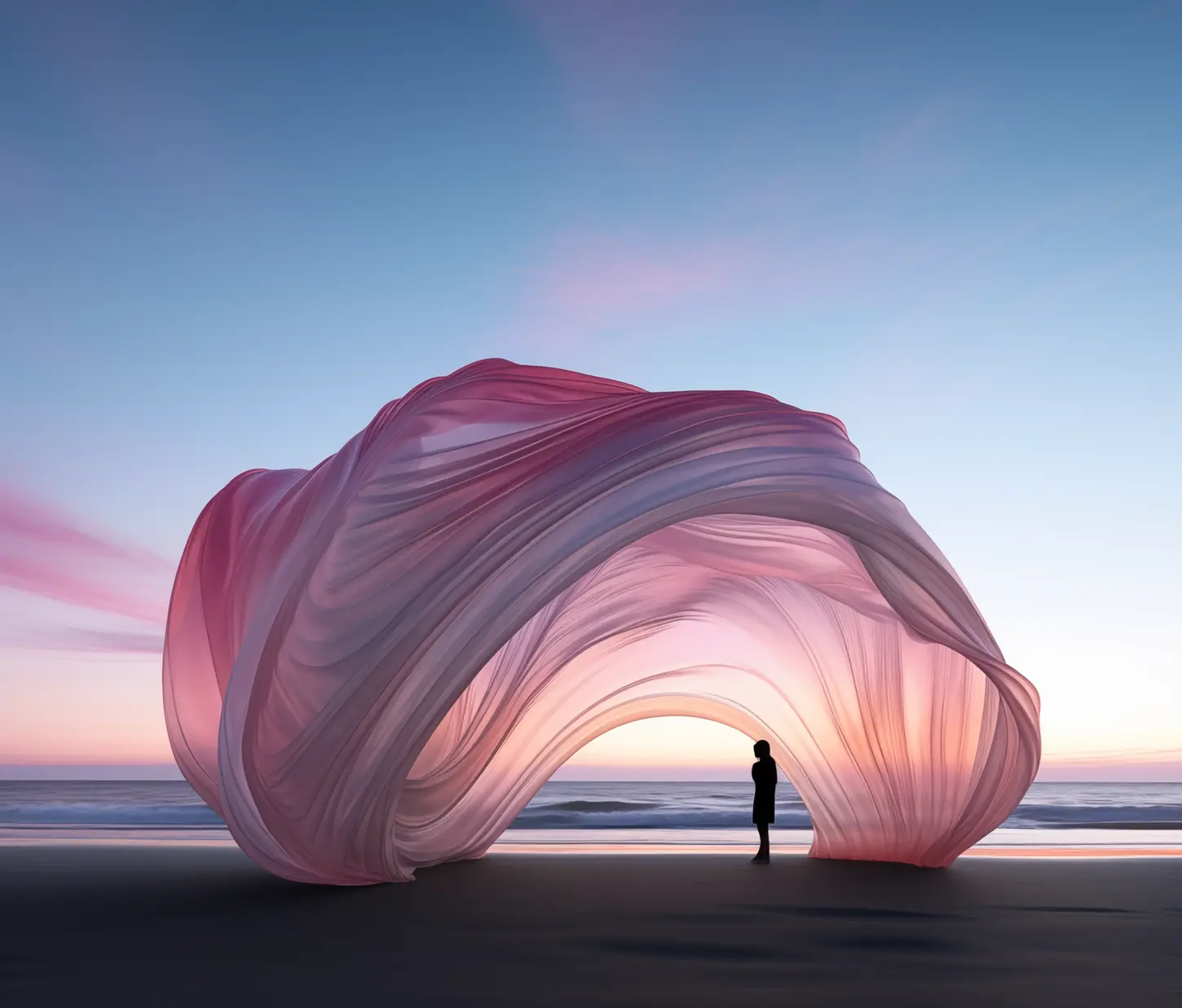 Wind weaves through pleats, scripting tales in air and shadow